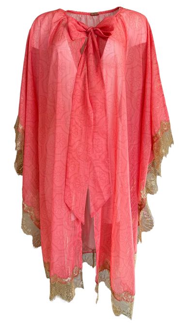 Hand-drawn artistry meets ethereal elegance in this versatile neck tie. Crafted from sheer fabric adorned with shimmering metallic threads, it catc...