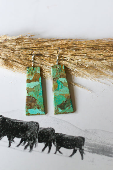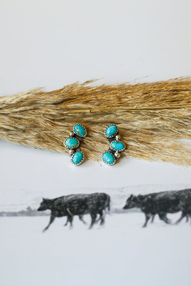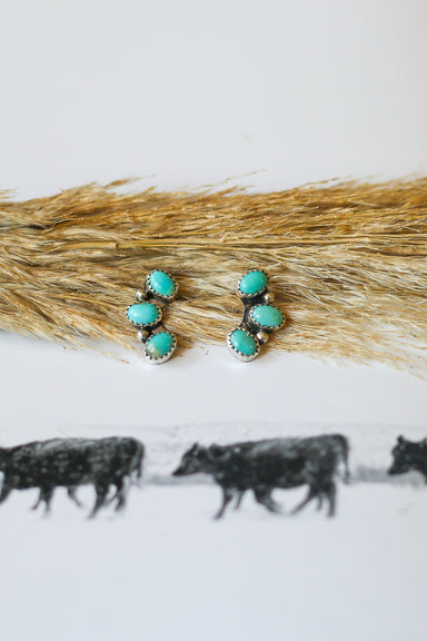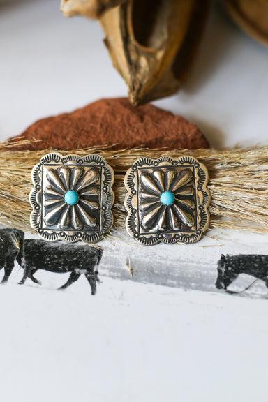 Perfect little dainty statement. Post sits slightly below the top Authentic turquoise Sterling Silver Actual Earrings may vary from photo