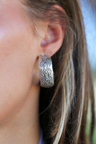 These are sterling silver, they have unique aztec stamping detailing on them, they are super lightweight