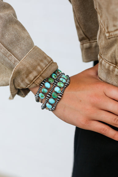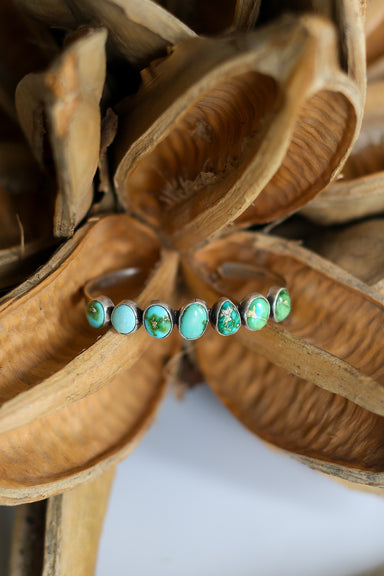 The seven stone cuffs are great to add to your stack! they vary in stones with mixed turquoise making it easy to pair with anything in your collect...
