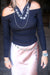 - Unique cross-neck design with off-shoulder style