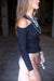 The Black Ribbed Cross Off the Shoulder Top