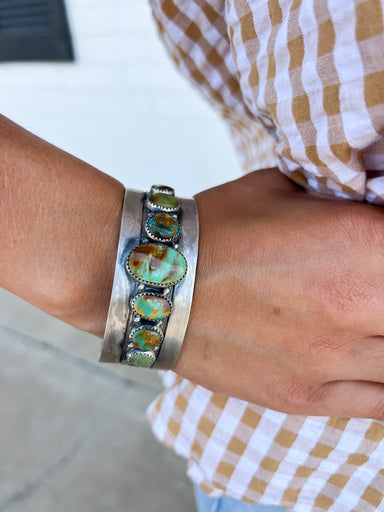 Add a touch of vibrancy and style to your wardrobe with the Elayna Turquoise Cuff - expertly crafted from stamped sterling silver and adorned with ...