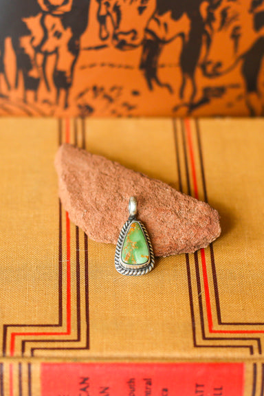 Experience the stunning beauty of the Turquoise Duo Pendant, with its 2 inch length perfectly complementing an 8mm Navajo pearl. Elevate your style...
