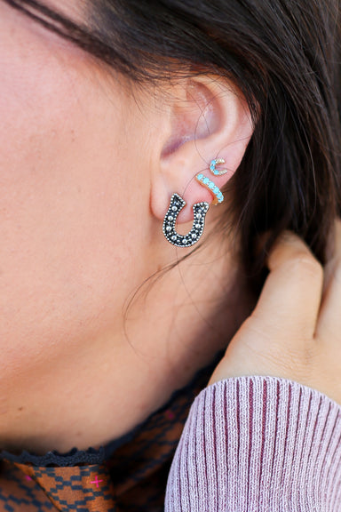 Add a dash of charm with these .50" 18k white gold plated horseshoe stud earrings! Perfectly petite and playfully lucky, they sparkle with a sleek ...