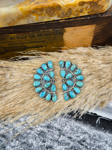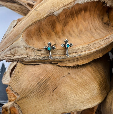 Experience the striking beauty of the Turquoise Zia Studs with a single, elegant turquoise stone at its center.