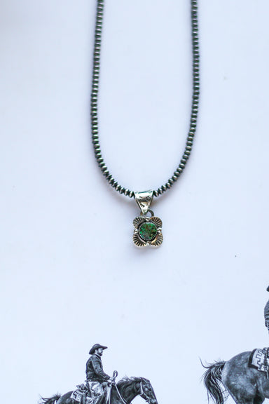Stamped by Native American Artist Charlene Yazzie, measures 1/2 inches from top to bottom with bail opening of 3mm
