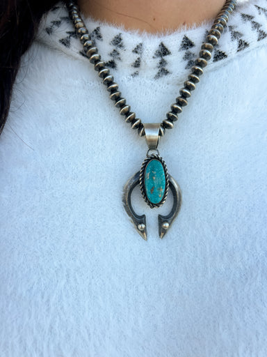 Stamped by Native American Artist Julia Scotty, measures 1 3/4 inches from top to bottom with bail opening of 5mm