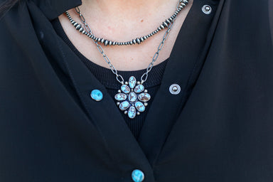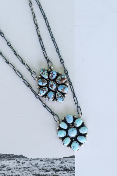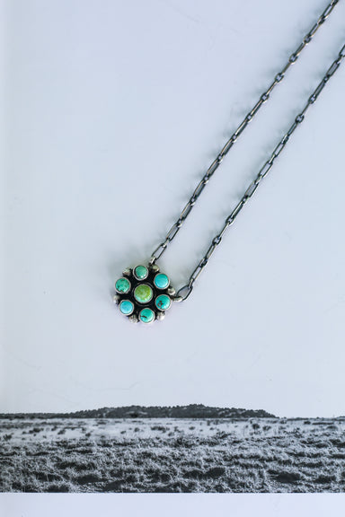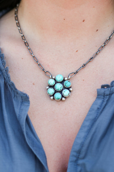 Dainty and a statement Round cluster style necklace Cluster measures 1 inch across 18 inch link chain, adjustable Native American Artist Sheila St...
