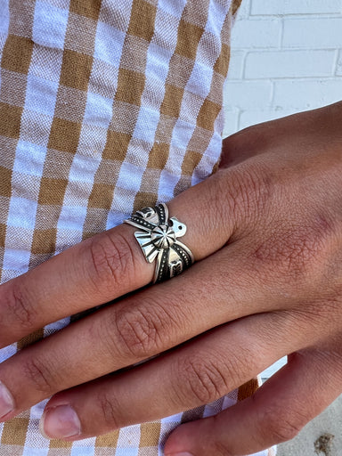 Our Howlite Inlay Ring is a great addition to your collection. We love stacking it with turquoise to break up colors, it looks gorgeous. It is a gr...