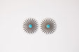 Make a bold statement with these 1.25" burnished silver burst round concho post earrings, featuring a striking turquoise accent at the center. The intricate starburst design captures light beautifully, while the vibrant turquoise stone adds a pop of color and southwestern charm. Perfect for those who appreciate authentic western-inspired jewelry with timeless appeal. Comfortable post backs ensure all-day wearability.