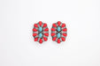 1.25"" Turquoise and Red Oval Cluster Post Earring