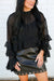 Elevate your wardrobe with this sophisticated black chiffon blouse, featuring an elegant cape-style silhouette. Delicate ruffles cascade from the waist to hem, while artfully gathered sleeves add dramatic flair. The high neckline and cropped lined bodice deliver a polished, flattering fit perfect for evening occasions or special events.