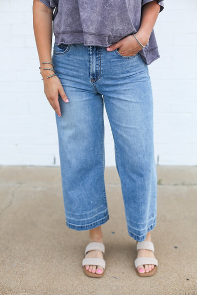 Experience comfort and style with our Gemma Mid Rise Wide Leg Jeans! Crafted with 93.7% cotton, 5.4% polyester, and 0.9% spandex, these jeans are p...