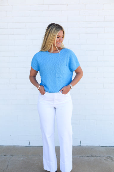 Indulge in the comfort and style of this waist-length bubble hem pullover top, made from a solid jersey knit that is both lightweight and non-sheer...