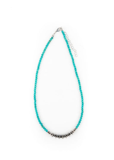 27" w/ 6" Tail Faux Navajo Pearl Disc Beaded Why Necklace with Turquoise Beaded Accents