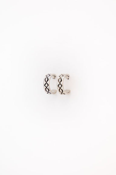 1.25" 18k White Gold Plated Diamond Stamped Hoop Earring