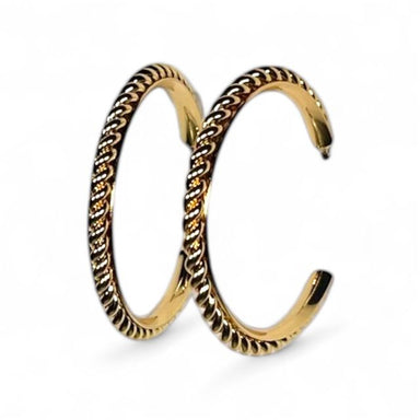 Elevate your style with this bold set of 3 pairs of 18k gold plated burnished twisted hoops. Each pair captures attention with its edgy, textured d...