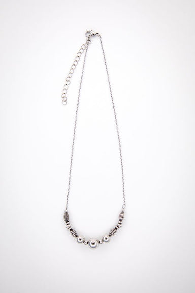Elevate your everyday style with this 15" 18k white gold plated beaded bar necklace. Its sleek beaded bar design adds a subtle yet elegant touch, p...