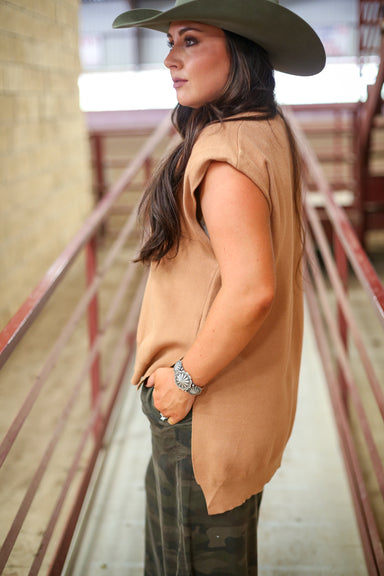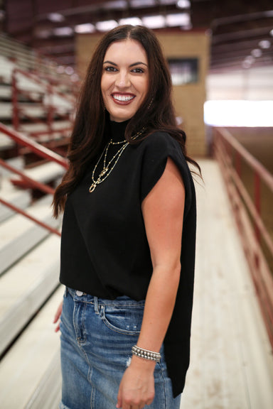 Mocked Neck Cap Sleeve Sweater material High Low length Measurements on a size medium Bust- 24 Length on front - 22 inches Length on back...