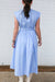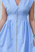 Effortless elegance meets everyday comfort in this baby blue midi dress. The front zip closure and cap sleeves offer practical styling, while textured stitching bands add visual interest. A smocked waistband at the back provides a flattering fit, and functional side pockets keep essentials within reach. Fully lined and crafted from lightweight woven fabric, this non-sheer dress transitions seamlessly from day to night. Perfect for those moments when you want to look polished without sacrificing comfort.