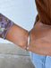 Stamped sterling, has stamped detailing, adjustable, great for stacking, measures at 6 inches around