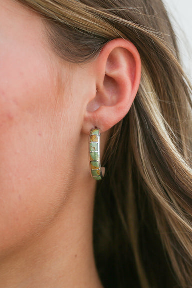 Experience the timeless elegance and ideal weight of our Large Turquoise Dottie Hoop. Let the vibrant turquoise hue and perfect weight of these hoo...