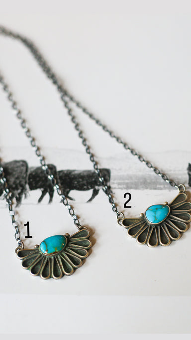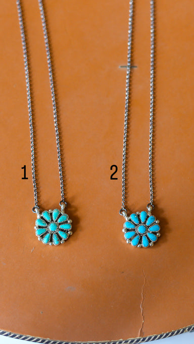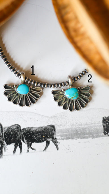 These Pendants come in different stone variations of Turquoise stones and perfect for your collection. They will fit up to a 4mm Navajo Pearl. Per...