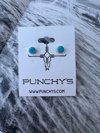 Sterling silver, authentic turquoise with a middle post measuring 1/4 inch.