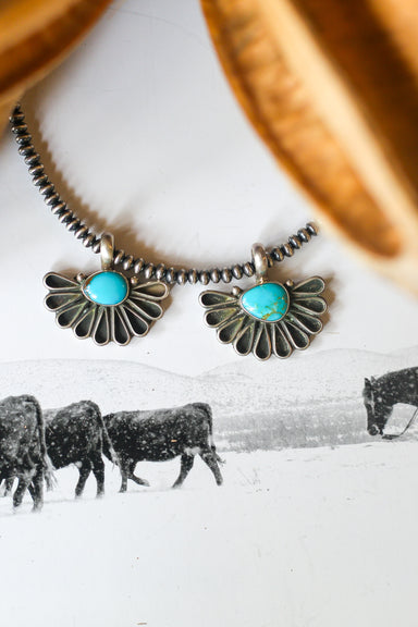Experience the beauty and power of authentic Navajo craftsmanship with our Dixon handmade Kingman turquoise necklace. Measuring 18 inches in length...