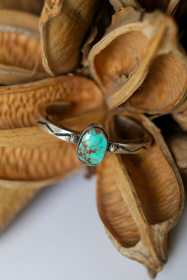 Is not stamped Thin band Kingman Turquoise Stones may vary slightly