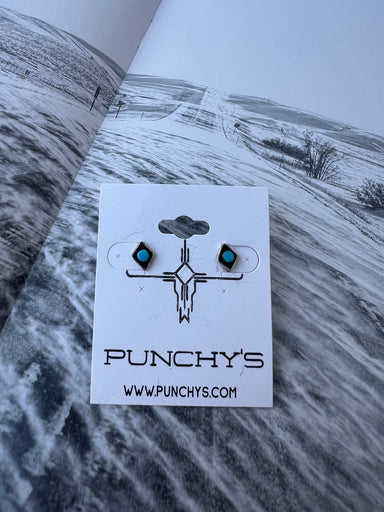 Sterling silver, authentic turquoise, measure 1/4 of an inch, and have a center post.