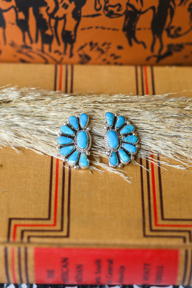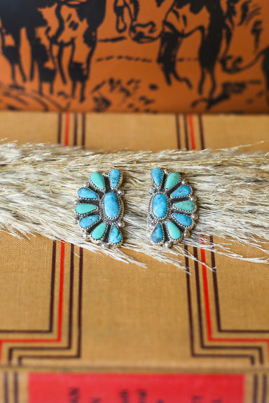 Stamped by the artist Alicia Wilson, they have a top post, measure right at 1 inch in length, super light weight, Kingman Turquoise