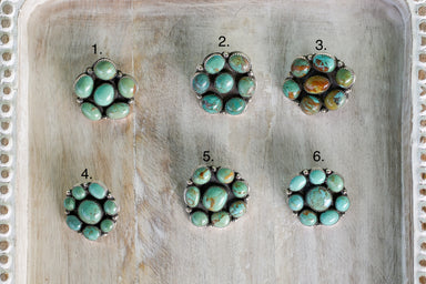 Sterling silver, measures 2 3/4 inches in length, has unique turquoise stones and stamping