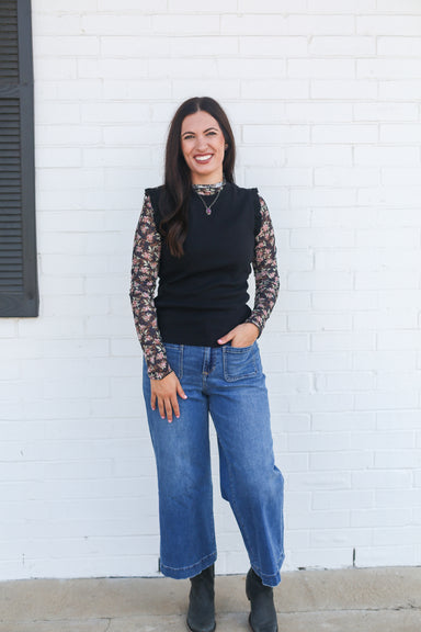 The Essential Black Tank is a must-have for any wardrobe. Its ribbed design provides a versatile and stylish option for any outfit.