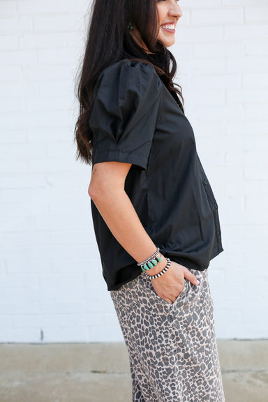 ELEVATE your style game with our stunning BLACK GINGHAM Pearl Snap top! This PRINTED SHORT SLEEVE PUFF top adds a playful touch to any outfit, guar...