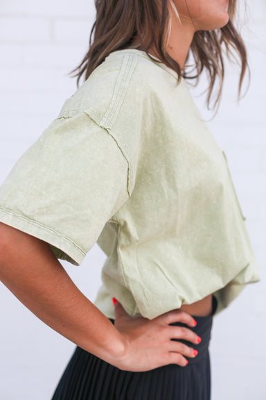 This crew neck tee features a mineral-washed finish and a front pocket, offering a relaxed, slightly cropped fit that provides comfortable, easygoi...