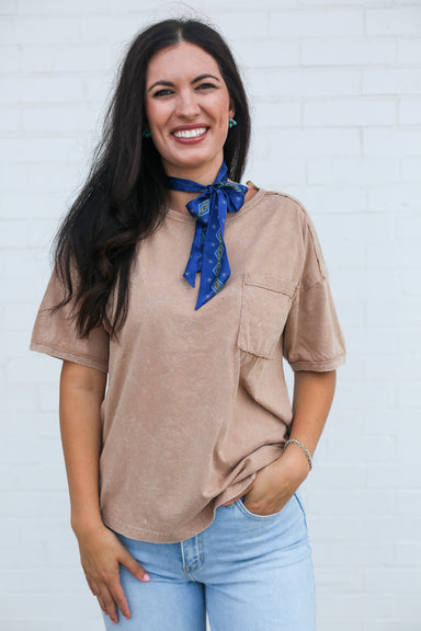 Experience ultimate style and functionality with the Boon Buckskin Top featuring an adorable pocket detail!