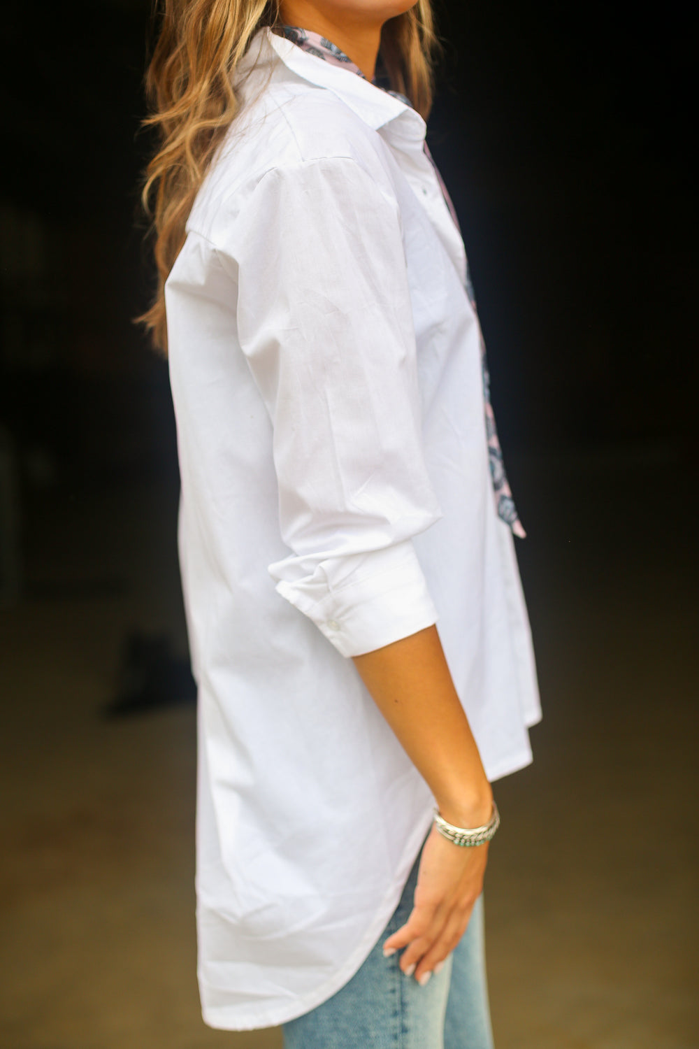 This versatile white button down is a must-have in any wardrobe, whether worn alone or layered. It's a timeless essential that you simply can't go wrong with!