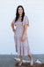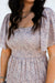 This mini dress features a beautiful woven floral print, flared silhouette, and charming smocking details for a touch of elegance.