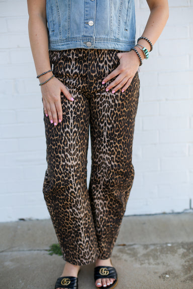 Unleash your wild side in these leopard print barrel jeans. Soft, stretchy, and undeniably fun, they're the perfect way to add attitude to any outf...