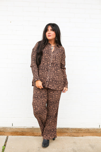 Unleash your wild side with this playful Pleated Leopard Print Set. Featuring a flirty pleated design and bold leopard pattern, it adds a fierce tw...