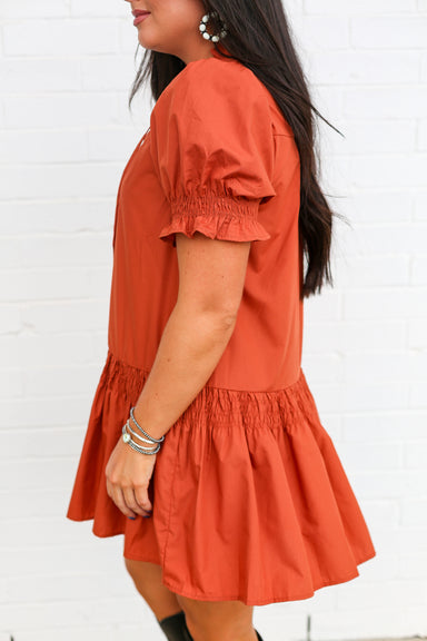 Step into charm with the Pumpkin Bloom Mini Dress—a playful twist on classic elegance. Its flirty cut and fresh design make it perfect for turning ...
