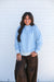 Add a splash of friendly charm to your wardrobe with the Howdy Embroidery Blue Sweatshirt. This cozy, soft sweatshirt features a playful embroidered "Howdy" that brings a warm, welcoming vibe to your everyday look. Perfect for lounging or casual outings, it’s your go-to for comfort with a cheerful twist.
