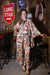 This hand-drawn satin set features a relaxed-fit top with a playful tie-neck and side slits. The pants come with a comfy drawstring waist for the perfect cinch.