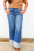Mid Rise Medium Wash Cuffed Wide Leg Jeans