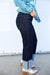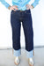 Mid Rise Solid Dark Wide Cuffed Jeans