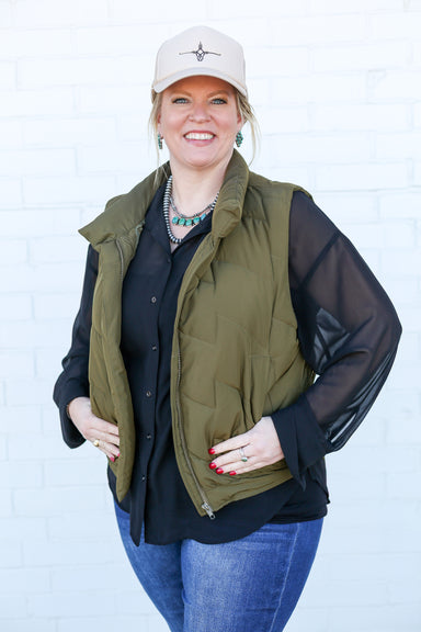 Layer up with the Janice Olive Puffer Vest—your new favorite piece for staying cozy without the bulk. This lightweight wonder pairs perfectly with ...