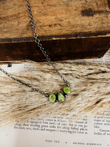 This Three stone cluster necklace is perfect to wear by itself or in a stack. Measures 18 inches long Authentic golden hills stones Native America...