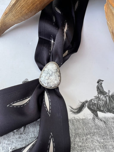 White Buffalo Stone Stamped by the Native Artist S Roped Edge Detailing Can be used as a twilly slide or put a hair tie on it and wear it in you...
